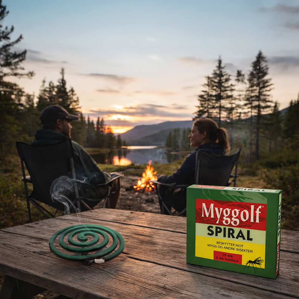 Myggolf myggspiral beskytter mot mygg og andre insekter i flere timer. Brukes utendørs – på hytta, i hagen, ved camping etc